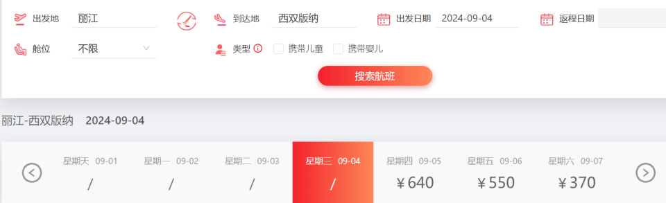 苏南瑞丽航空官网显示的近期丽江至西双版纳票价