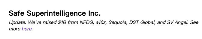 从SSI官网的情况来看,这家新公司大概率仍处于启动状态,所以这些人投钱并不是因为SSI已经做出了什么,而是为苏茨克维的愿景背书。在近期VC普遍对人工智能企业兴趣减弱的背景下,这笔投资显示出仍有投资人愿意为顶尖杰出人才投下重金。