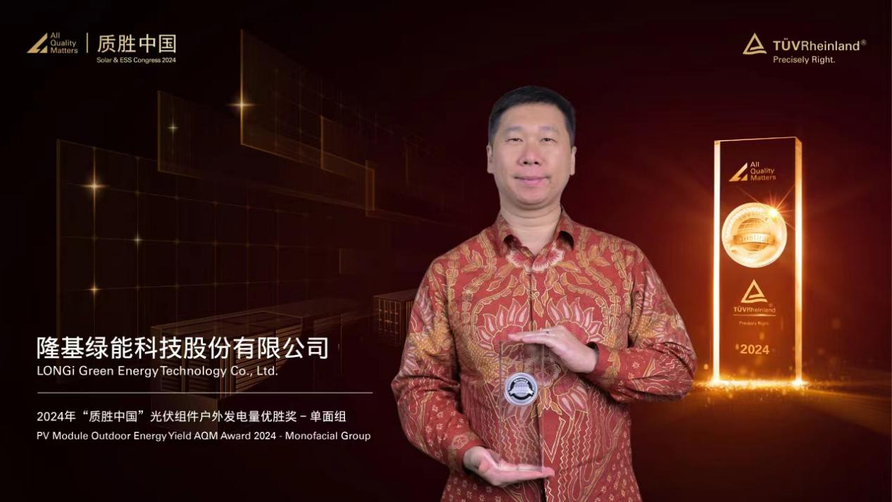 9月3日,由德国莱茵TÜV集团(以下简称“TÜV莱茵”)主办的2024“质胜中国”光储盛典十周年颁奖典礼在上海隆重召开。隆基BC二代旗舰Hi-MO 9凭借卓越的发电性能和极致的可靠性表现成功斩获“质胜中国”光伏组件发电量仿真优胜奖、组件可靠性优胜奖,针对分布式市场的产品Hi-MO X6则摘得户外发电量优胜奖。同时,这也是隆基自2017年首次参评获奖后,连续第8年获得“质胜中国”光伏组件类奖项。