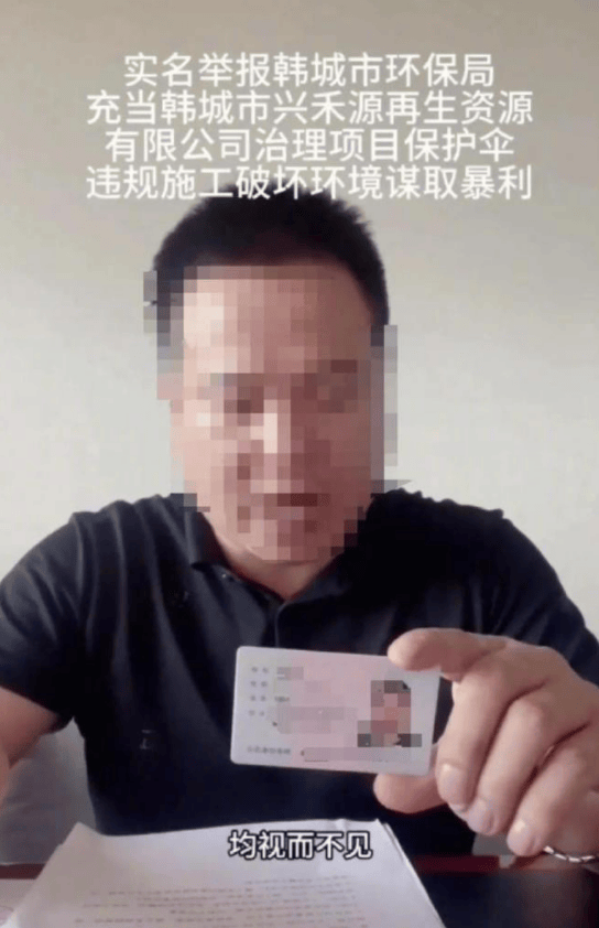 据大河报报道,8月29日,陕西渭南韩城市一男子发布实名视频,举报当地一资源再生企业违规施工、破坏环境,致70万吨垃圾流入黄河,当地环保部门对群众举报视而不见,充当企业“保护伞”,视频引发关注。