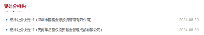 8月30日,中国证券投资基金业协会(以下简称中基协)发布了2张纪律处分决定,剑指民商华岳股权投资基金管理成都有限公司(以下简称民商华岳)、深圳市国富金源投资管理有限公司(以下简称国富金源)。