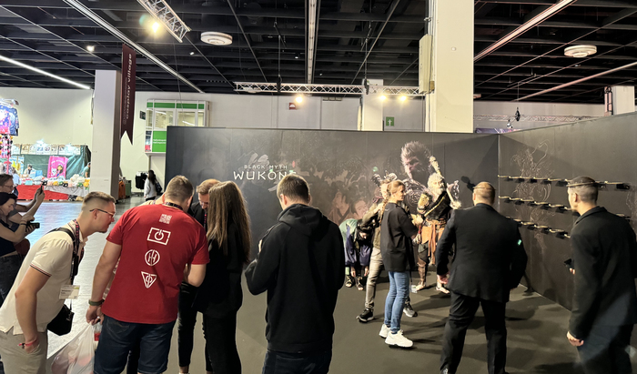 2023年,游戏科学曾经在科隆游戏展上开放了《黑神话:悟空》的线下体验活动,现场吸引了大量人群排队。今年因为展会日期与游戏发售日重合,游戏科学并未参展,但在科隆现场,依然有大量玩家和开发者在拍照区域参与互动。