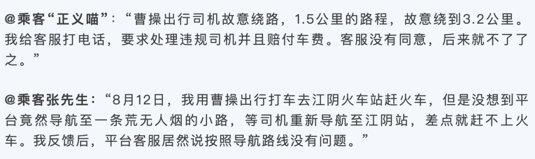 曹操出行的服务也屡被乘客诟病。
