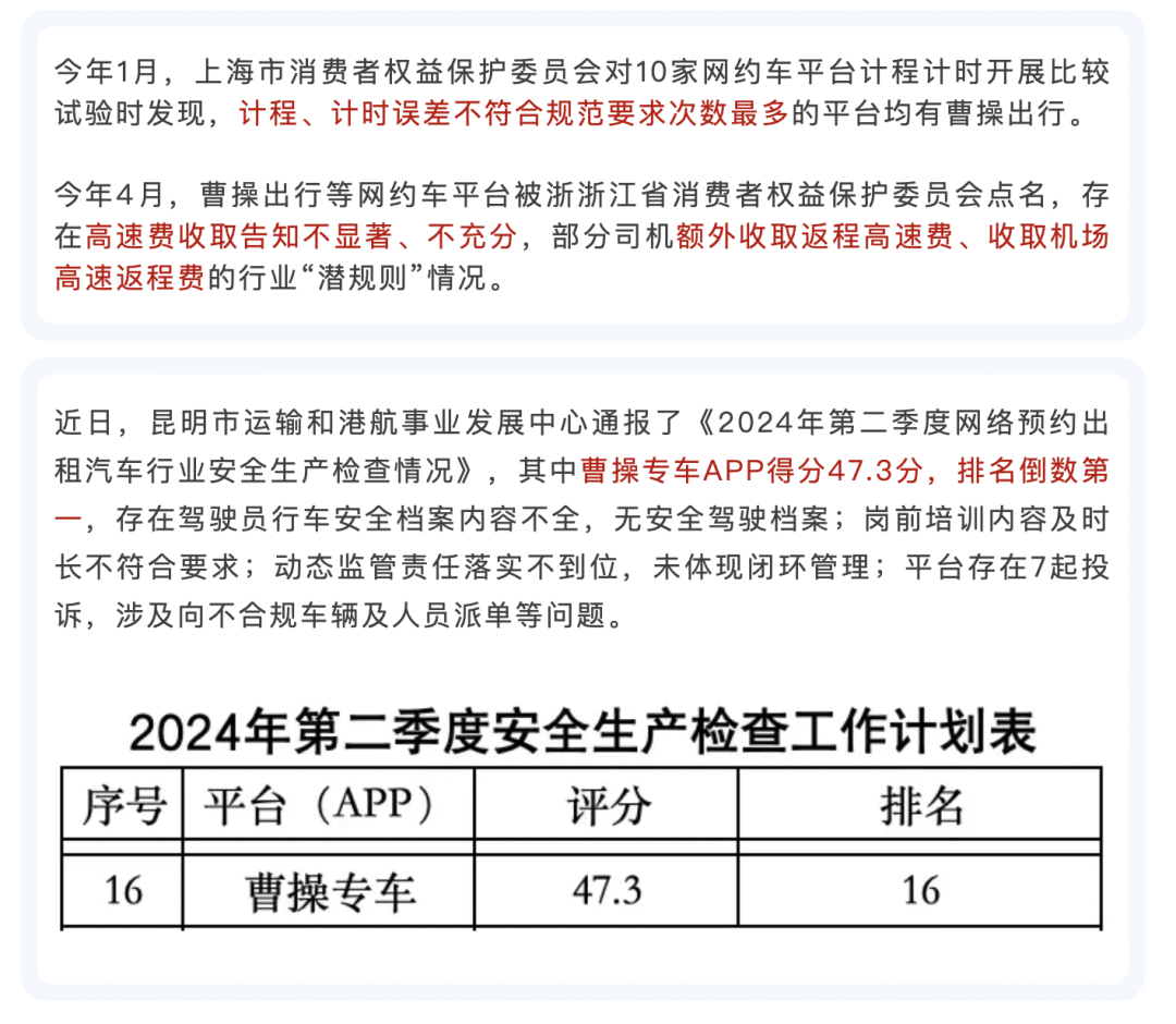 记者查询发现,曹操出行还多次被相关部门点名批评。