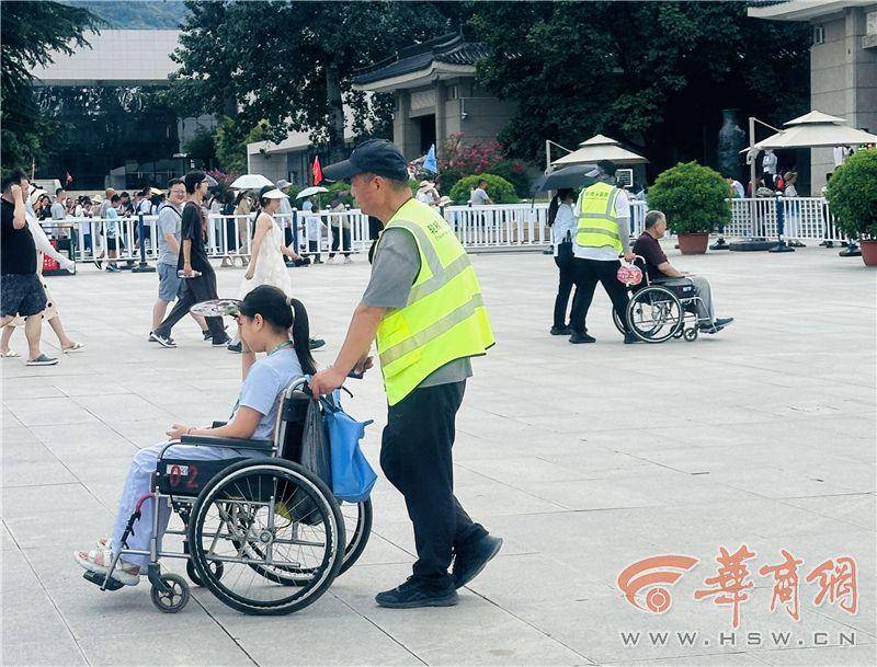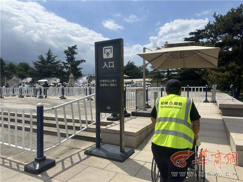 整个过程中,只要有无障碍通道,轮椅都走无障碍通道,“坐我们的轮椅车快,否则光大门口排队少说也得20分钟。走的也是人少的路,避开人多的地方,省时间。门外接的游客要送出去,里面接的游客就在里面结束,是我们这里不成文的规定。”工作人员说。