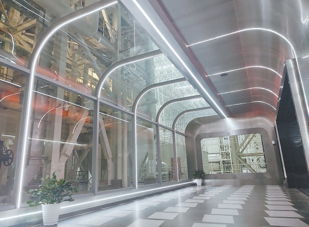走进生活垃圾焚烧发电厂主控楼三层,有一处沉浸式参观体验平台,透过玻璃幕墙,能看到厂房内巨大的生活垃圾焚烧处理设施。