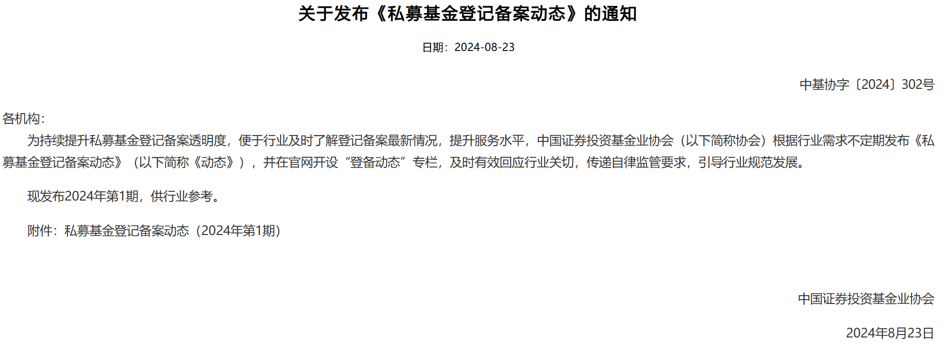 8月23日,中基协根据行业需求发布《私募基金登记备案动态》(以下简称 《动态》),并表示在官网开设“登备动态”专栏,及时有效回应行业关切,传递自律监管要求,引导行业规范发展。