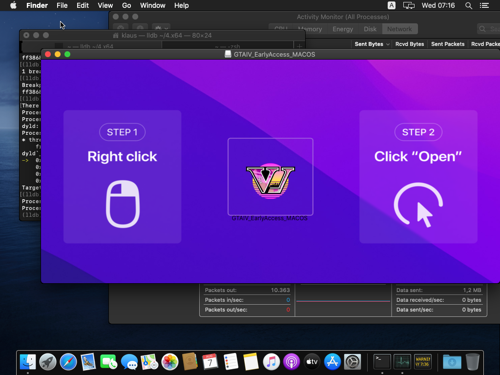待用户安装 dmg 后,它就会提示用户打开。当用户打开该文件后,它就会借助 macOS 命令行工具 osascript 提示用户输入密码。