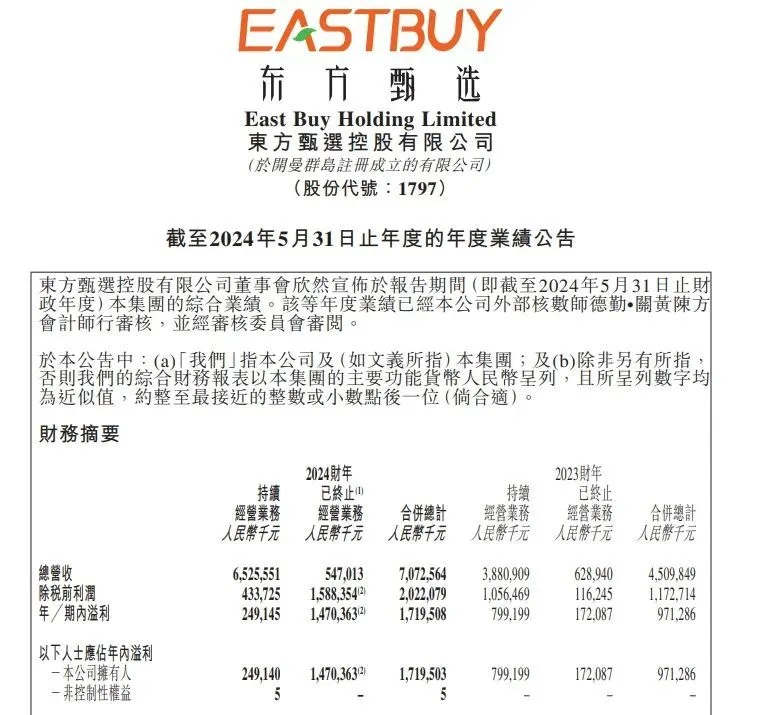 8月23日,东方甄选(01797.HK,股价10.88港元,市值112.2亿港元)公布2024财年(2023年6月1日至2024年5月31日)业绩。
