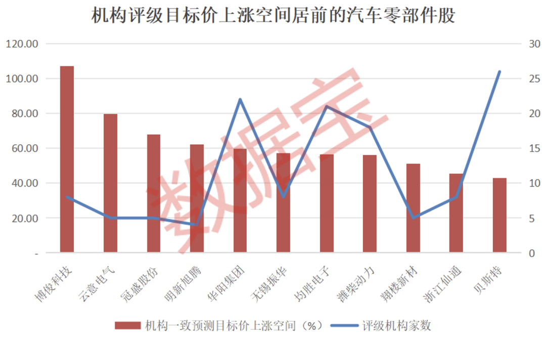 在二级市场持续下跌的背景下,个别汽车零部件股或存在“错杀”的情况。根据机构一致预测来看,博俊科技、云意电气、冠盛股份、潍柴动力等11股目标上涨空间超40%。