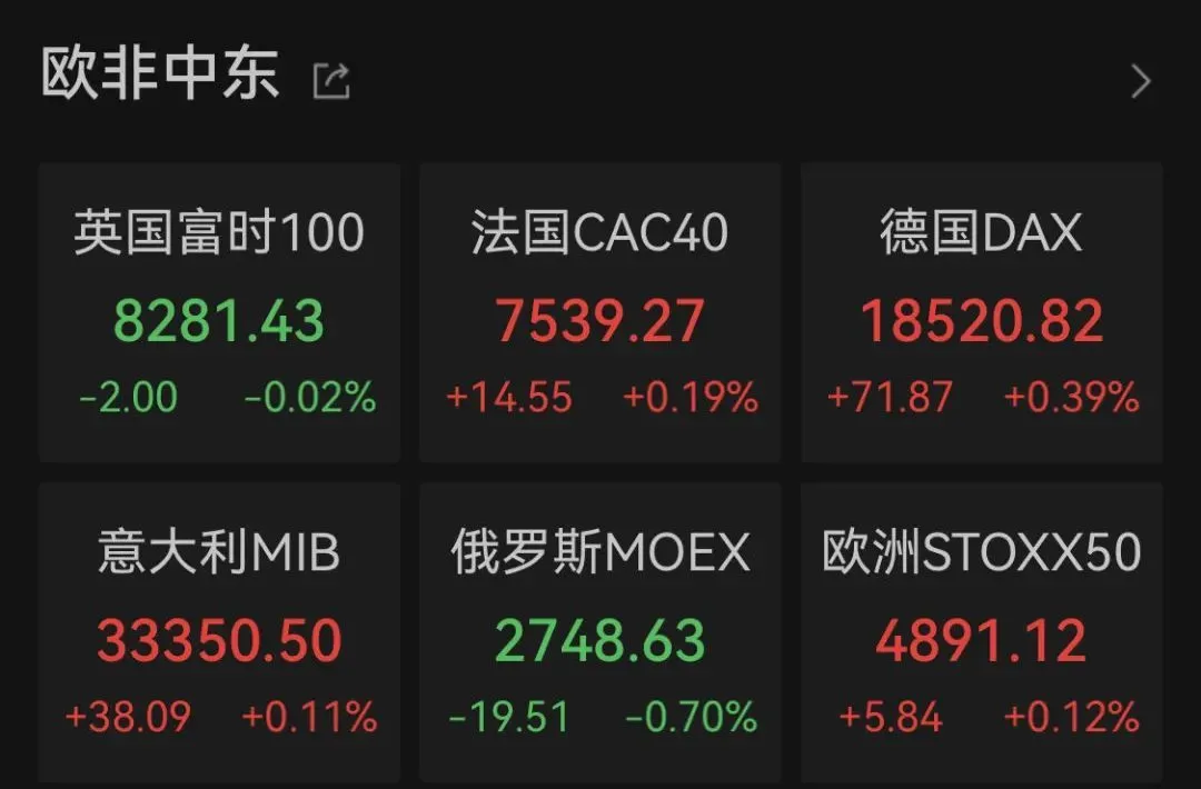 欧洲股市方面,英法德三国重要股指表现平稳。