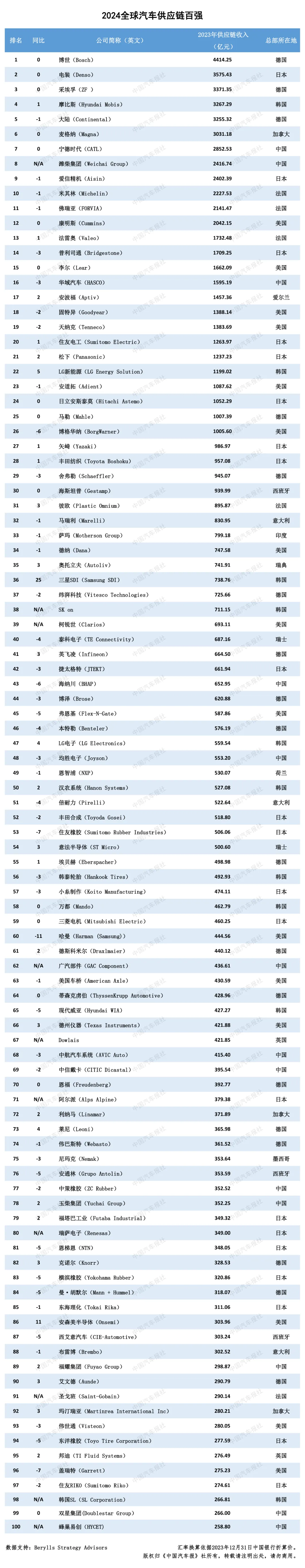 附:“2024中国汽车供应链百强”、“2024全球汽车供应链百强”