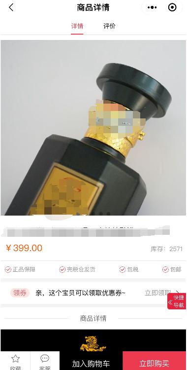 8月21日,《每日经济新闻》记者在“通淘国际”“通淘优选”的小程序中查询发现,店铺内的确在售卖相关品牌的白酒。