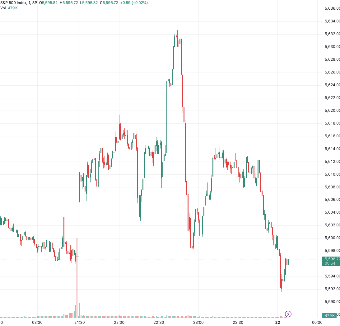 数据发布后,标普500指数先是冲高涨至5632点,随后跳水跌破5600点。该指数目前正处于冲击历史新高的“临门一脚”状态,此前的历史高点是7月17日创下的5669.67点。