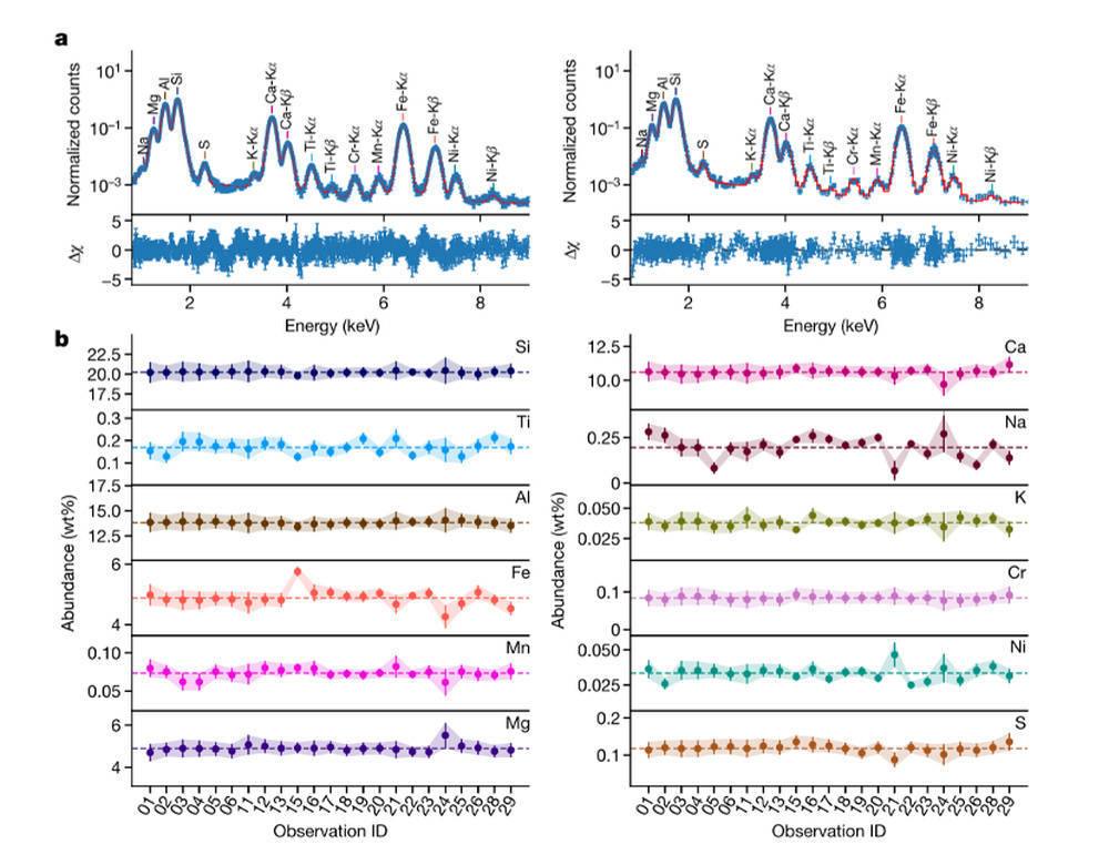 论文作者Santosh Vadawale和同事对Pragyan月球车测量结果的分析显示,月球南极洲高地风化层具有实质性空间均匀性。APXS测量表明,登陆器周围的月壤由相对统一的元素组成,主要为含铁斜长岩,这是月球岩浆海(LMO)结晶的产物,表明维克拉姆登陆点的成分与月球岩浆洋假说一致。