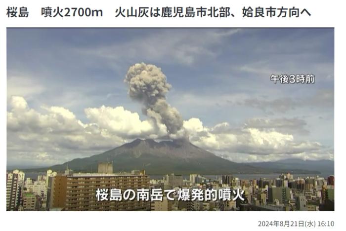 据报道,大部分火山灰都在樱岛沉降,另有少量火山灰可能会沉降到鹿儿岛市北部等地。