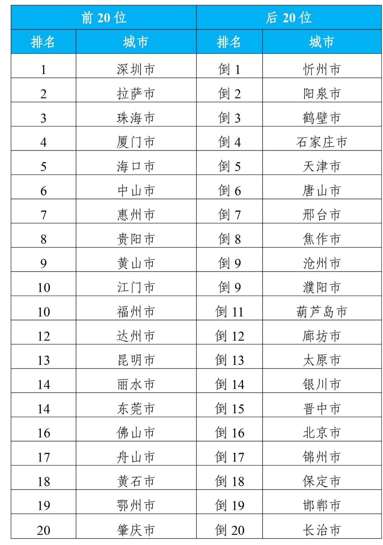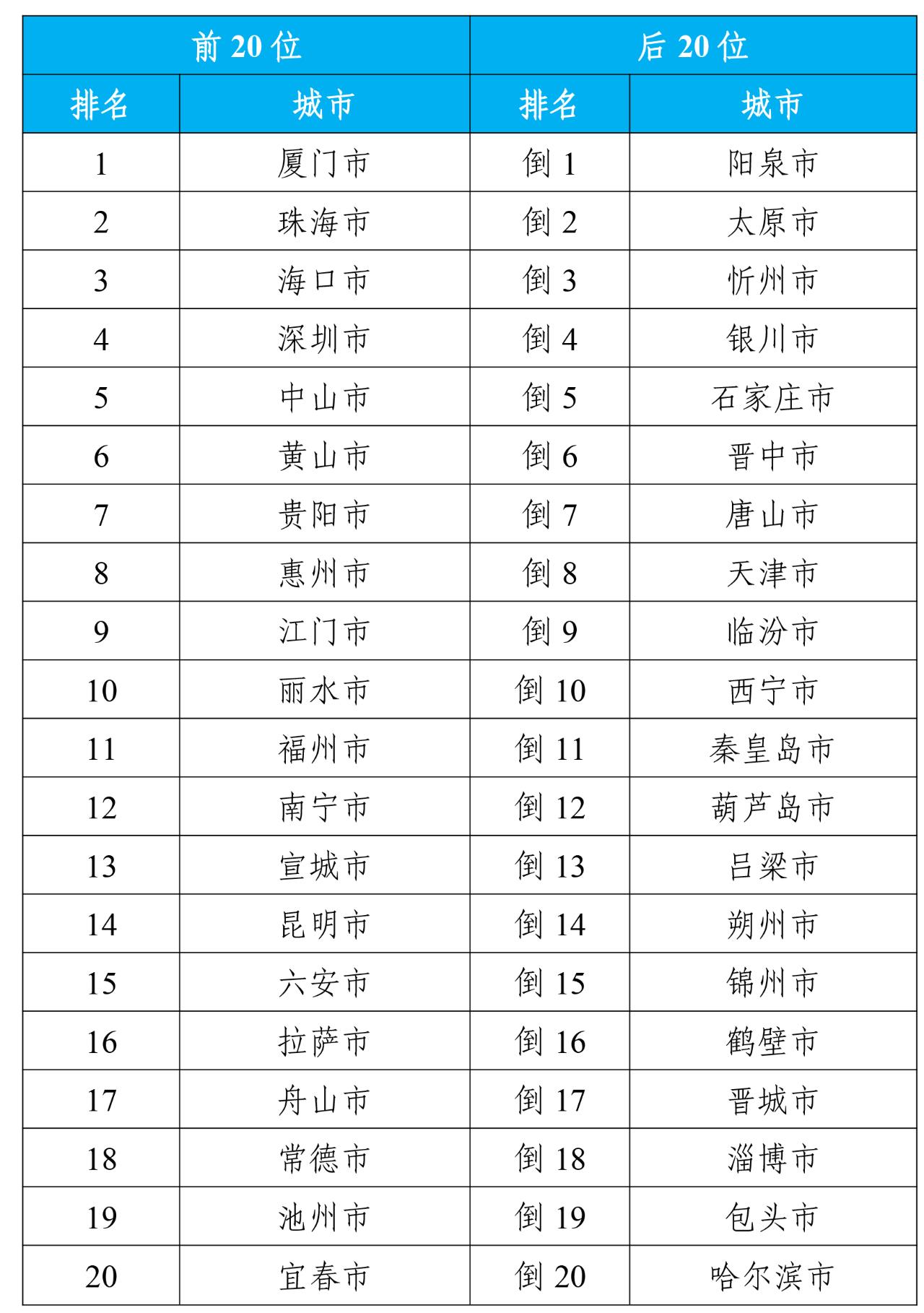 2024年7月168个重点城市空气质量 排名前20位和后20位城市名单