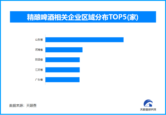 而从地域分布来看,山东、河南以及江苏三地,精酿相关企业数量位居前列,分别拥有1770余家,840余家以及770余家;从成立时间来看,60.9%的相关企业成立于1-5年,成立于1年内的相关企业占25.2%。