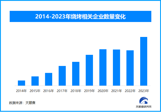 近年来,烧烤市场持续升温,门店数量激增。天眼查专业版数据显示,截至目前,全国现存与烧烤相关的企业约为59.5万余家。
