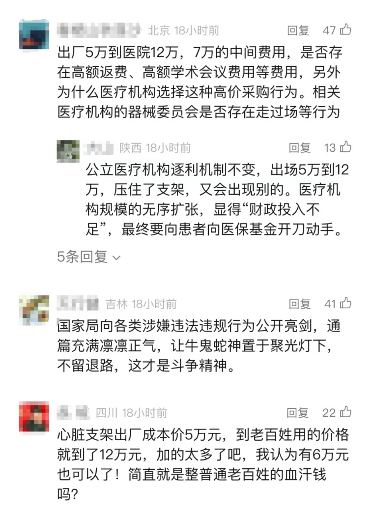 “出厂5万,到医院12万,7万的中间费用”,有网友对费用流向产生疑问。