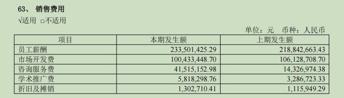 来源:荣昌生物半年报其次来看销售费用。今年上半年,荣昌生物销售费用达3.90亿元,较上年同期3.50亿元进一步增长11.28%。其中,员工薪酬、咨询服务费、学术推广费均进一步增加。