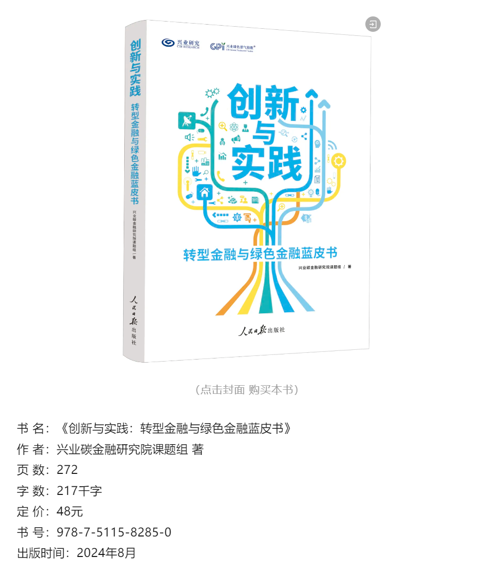 2022年,兴业银行在兴业研究绿色金融研究团队的基础上升级组建并挂牌成立“兴业碳金融研究院”,重点开展绿色金融、气候变化与环境经济学、能源与产业低碳转型方面研究,致力成为中国银行业领先的国家绿色金融智库。本书的作者均为来自兴业研究公司兴业碳金融研究院的研究员,他们不仅有着丰富的专业知识和从业阅历,其中更有亲身参与了对政策的建议与对兴业银行绿色金融业务推动的中国第一代绿金人,感谢他们为本书贡献了热情与智慧。