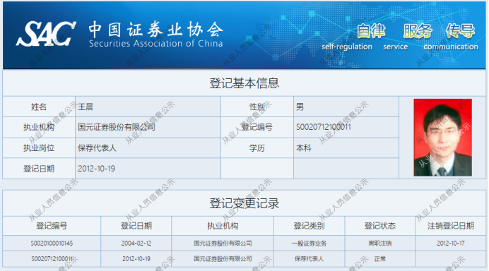 王晨以国元证券原投资银行总部总经理的身份而备受关注,不仅如此,他的首批保代身份,也是行业所关注的。根据公司回应,王晨是因个人原因配合有关部门调查。