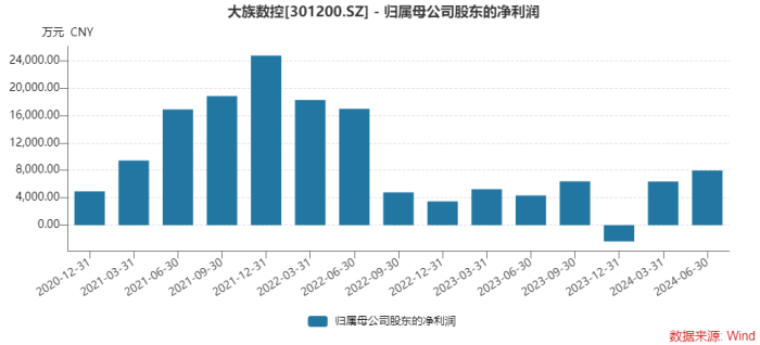 与一季报相比,大族数控第二季度业绩环比上升。一、二季度归母净利润分别为6,360.12万元和7,961.79万元。
