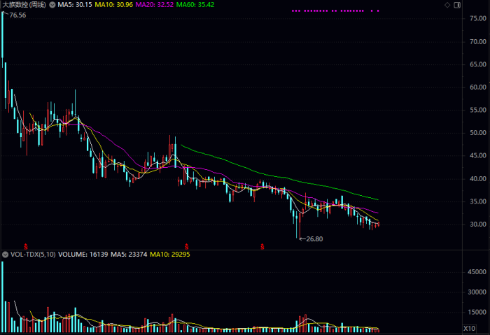 二级市场上,大族数控股价走势不如人意,已大幅度破发。