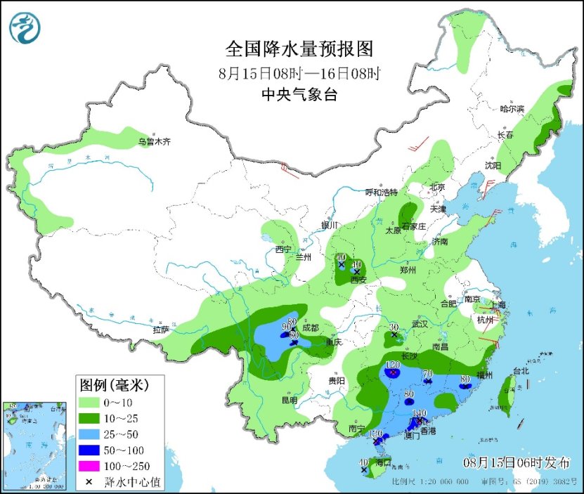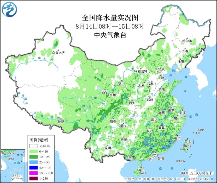 中新网8月15日电 据中央气象台网站消息,中央气象台发布每日天气提示。昨日,强降雨区依然分散,监测显示,广东中东部、广西东部和南部、福建东部和西南部、江西中南部、湖南南部、四川盆地西部和川西高原、浙江中部、安徽、江苏北部、山东东部以及台湾岛西部等地出现分散性大雨或暴雨,局地大暴雨(100~184毫米)。另外,青海东部、甘肃中东部、宁夏中北部、陕西西南部、西藏东部等地出现中雨、局地大雨,甘肃天水和陇南、陕西宝鸡局地暴雨(50~81毫米),甘肃天水清水县局地大暴雨(100~116毫米)。