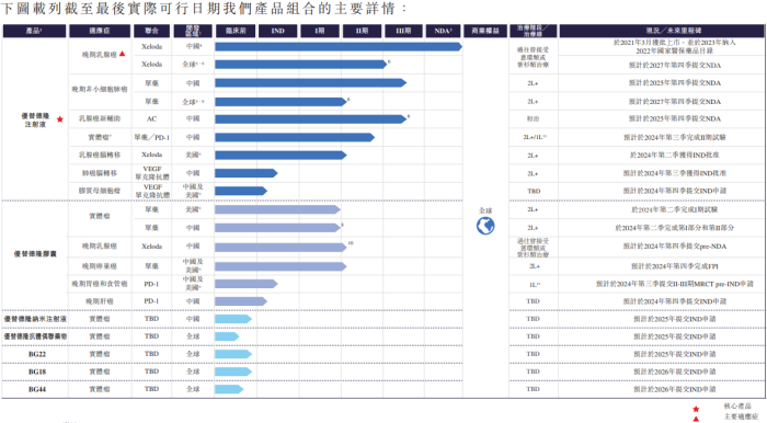 该公司正在开发优替德隆的口服剂型,即优替德隆胶囊,并自主开发了三种具有不同标靶和作用机制的候选产品以及其他活性药物成分的BG22、BG18及BG44,这些均处于早期的开发阶段。展望未来,该公司计划在2024年第四季度向国家药监局提交优替德隆胶囊联合卡培他滨治疗晚期乳腺癌的pre-NDA申请,在中国完成优替德隆胶囊单药治疗晚期卵巢癌II期临床试验的FPI。
