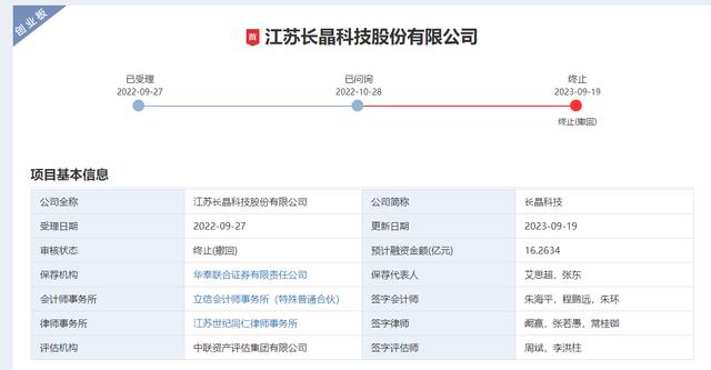 长晶科技是由华泰联合证券保荐,2022年9月27日获得受理;2023年9月19日,长晶科技与保荐机构华泰联合证券提出撤销在创业板IPO的申请,深交所因此终止审核。