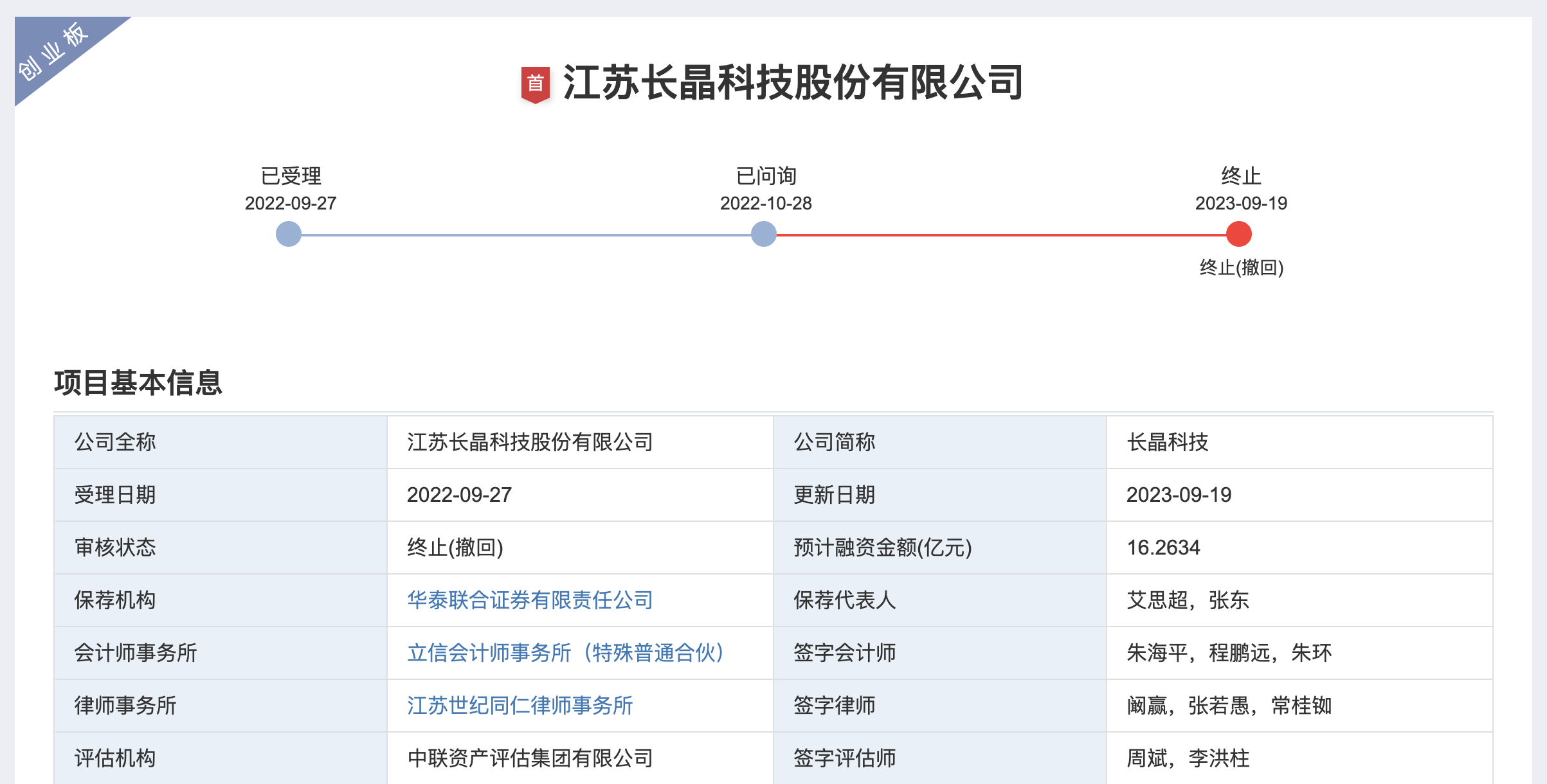 澎湃新闻了解到,该案例多项细节指向长晶科技。2022年09月27日,长晶科技向创业板递交了招股书,2023年09月19日,撤回了IPO申请。