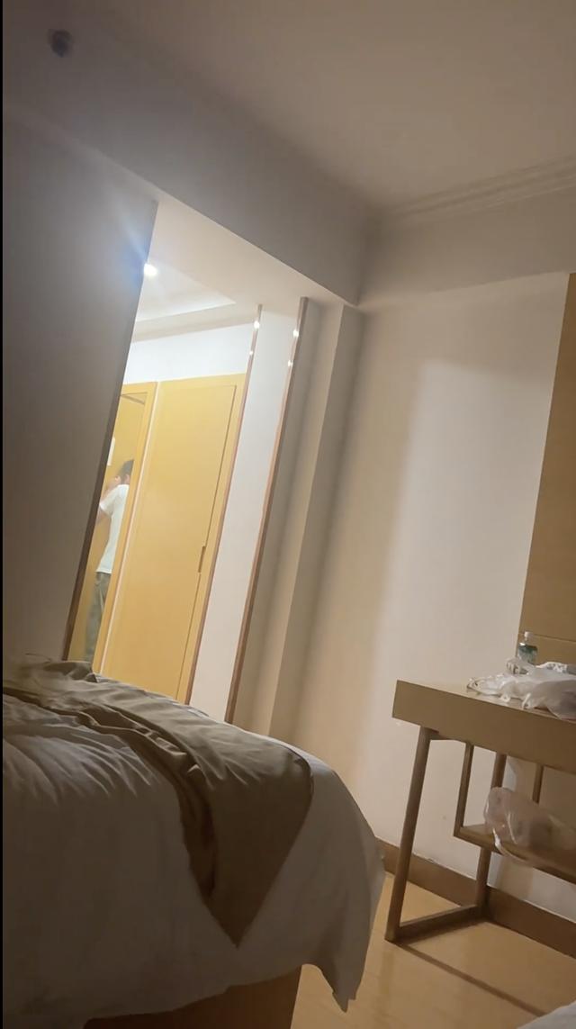 酒店保安夜间巡视误入住客房间。图/视频截图