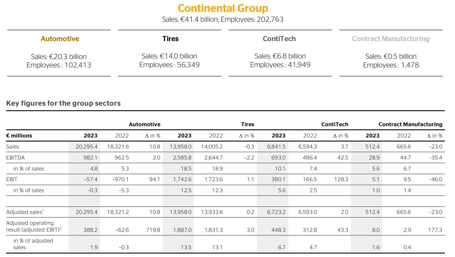 大陆集团2023年财报数据显示,汽车业务、轮胎业务和康迪泰克的营收分别为203亿欧元、140亿欧元和68亿欧元。