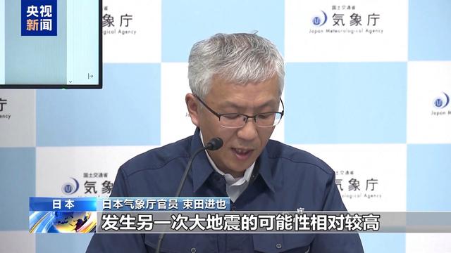 日本气象厅官员束田进也:与正常时期相比,发生另一次大地震的可能性相对较高,但我们不确定一定会在该时段内发生大地震,请响应政府和当地防灾办公室的建议。