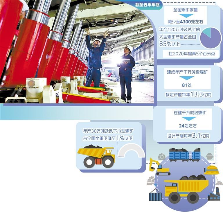 “原来1万多处煤矿一年生产30多亿吨煤,现在4000多处煤矿能生产40多亿吨煤。”中国煤炭工业协会纪委书记、新闻发言人张宏告诉记者,作为传统能源行业,提升产业集中度、优化产能布局是煤炭行业转型发展、建立现代化产业体系的重要内容。通过深入推进煤炭行业供给侧结构性改革,淘汰落后产能,改变多、散、小的分布格局,煤炭产业集中度大幅提升,现代化大型矿井已成为产业主力军。