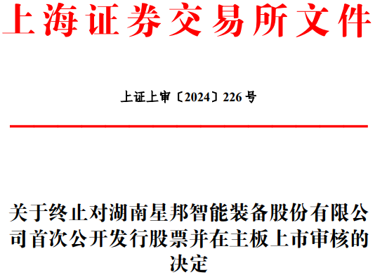 中国经济网北京8月8日讯 上交所网站昨日发布关于终止对湖南星邦智能装备股份有限公司(以下简称“星邦智能”)首次公开发行股票并在主板上市审核的决定。