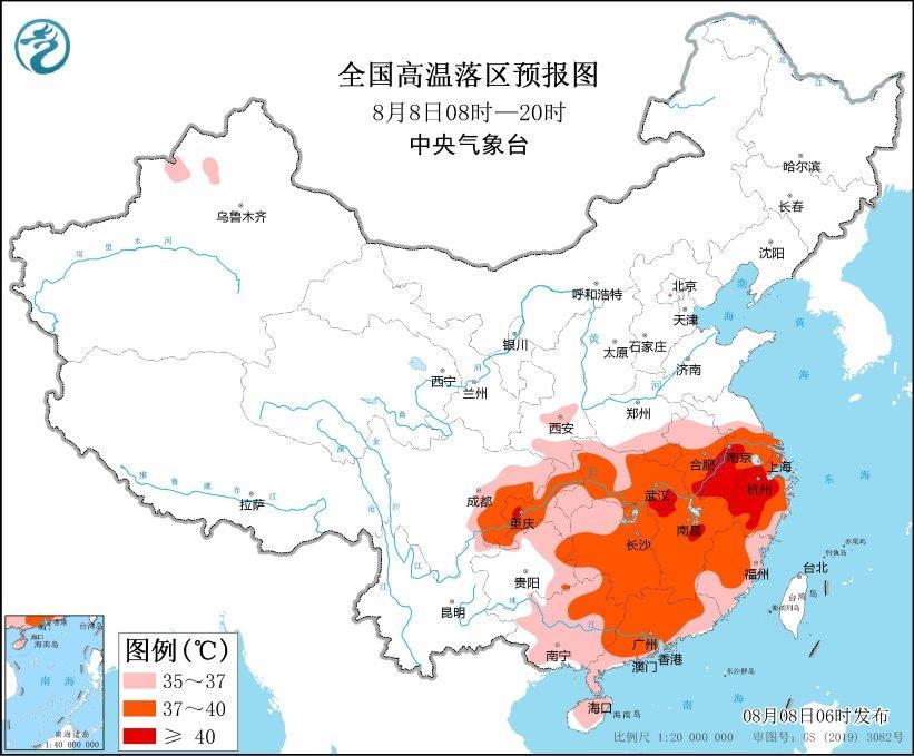 预计8月8日白天,四川东部、重庆、陕西中南部、黄淮南部、江汉、江淮、江南、华南及贵州东部等地有35℃以上高温天气。