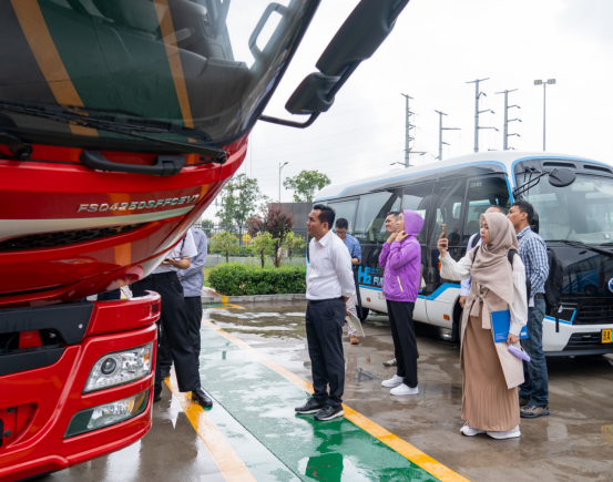 在美锦能源厂区,氢能重卡吸引了参观团的注意力。当听说每辆氢能重卡每年行驶10万公里以上,可减少108吨碳减排放时,来自南苏门答腊省能源矿产资源局的局长亨德里安沙(Hendriansyah Supawi Main)表示:我们省也计划引进氢能车,我也希望有机会体验一下开氢能重卡。