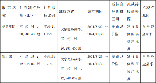 上轮减持中,伊品集团和铁小荣计划在6月5日至9月4日以集中竞价交易的方式合计减持不超过1,661.47万股,不超过公司总股本的1%。