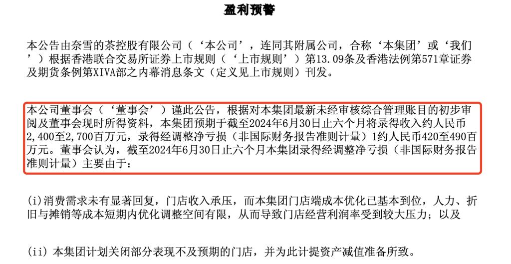 在2023年刚刚扭亏为盈后,今年上半年,奈雪预计将再次亏损。