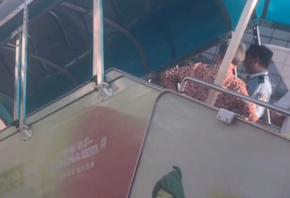 视频发布者称,“好像是对着发动机丢,没有对准,反弹后掉到地上被机场地勤人员发现后报警处理,搞得飞机停下来检查了快一个小时才起飞。人被带走了。”