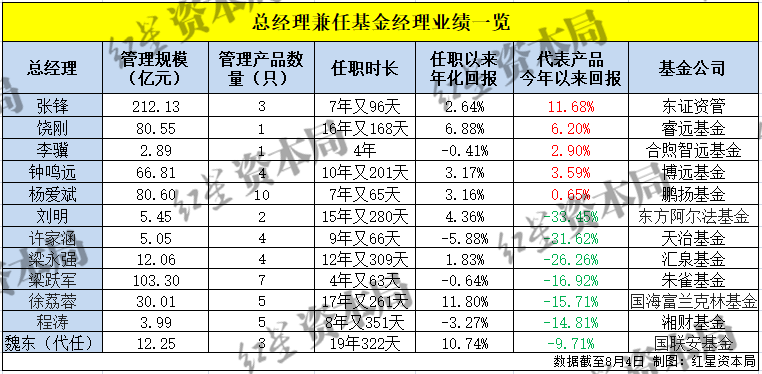红星资本局8月6日消息,近期市场持续调整背景下,不少公募基金投资者将目光放到了基金公司总经理管理的基金产品上。作为基金公司的灵魂人物,总经理在承担公司日常管理业务的同时任职基金经理的表现如何,引发关注。