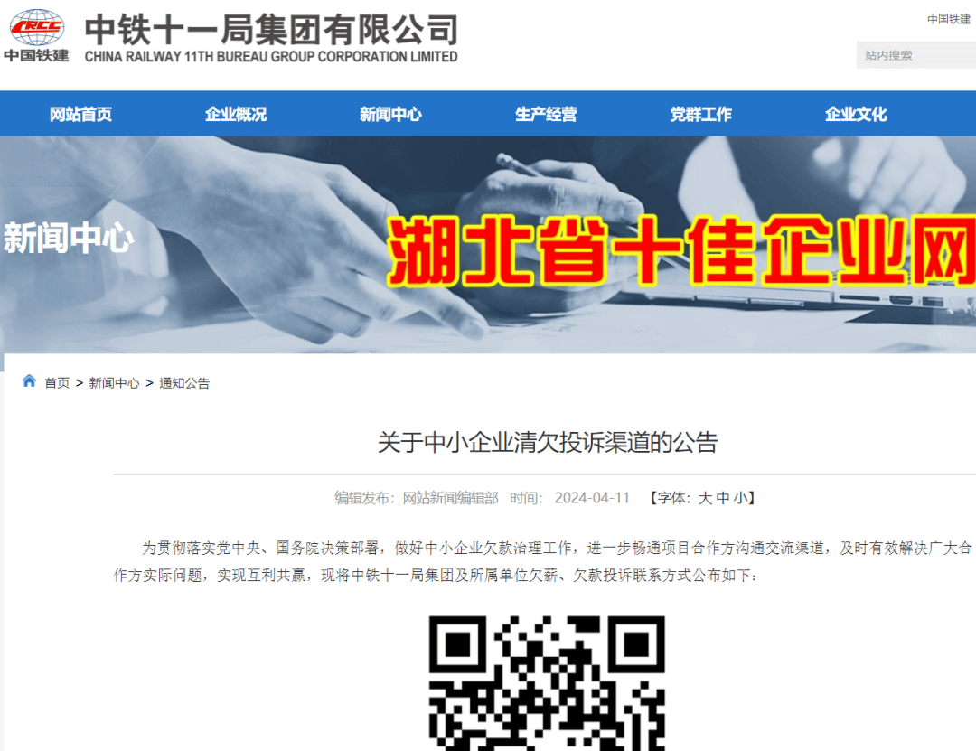 实际上,中国铁建间接控股公司中铁十一局集团第一工程有限公司等在微信、官网等公告了欠薪维权联系电话。