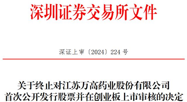 深交所网站7月30日公布关于终止对江苏万高药业股份有限公司(简称“万高药业”)首次公开发行股票并在创业板上市审核的决定。