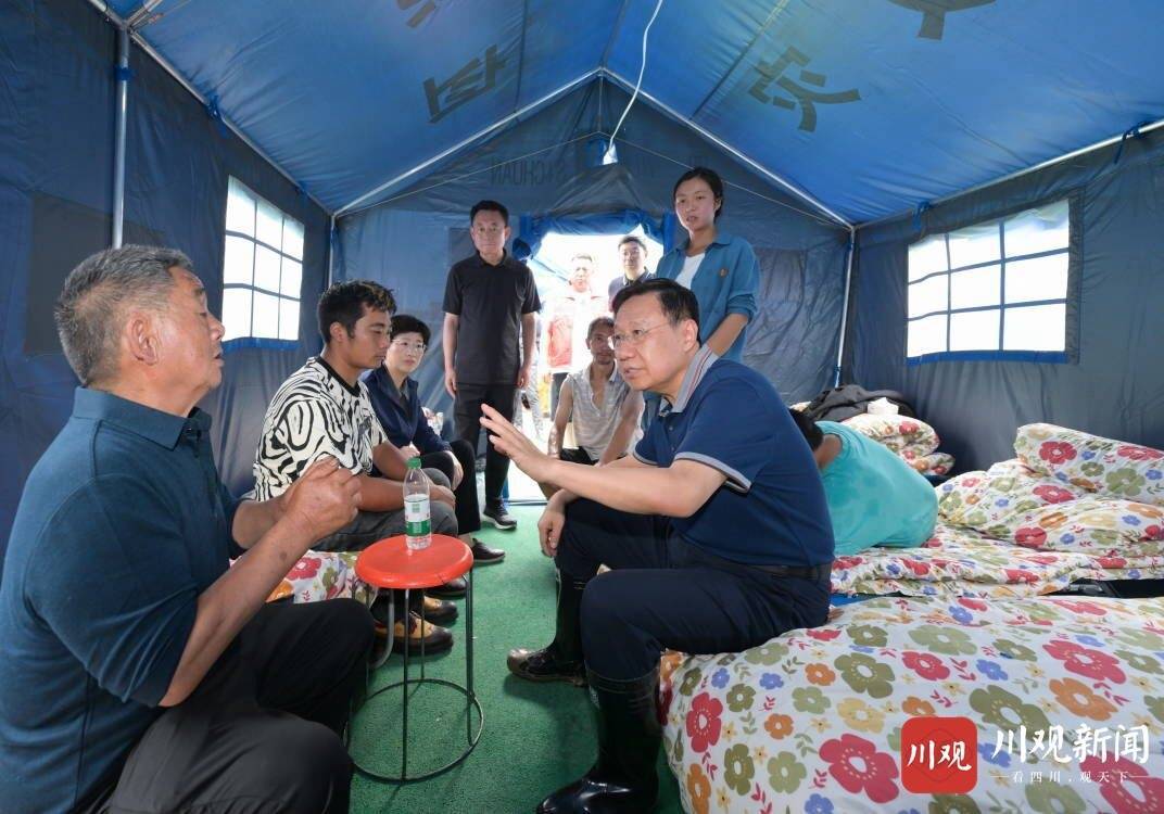 8月4日,省委书记王晓晖,省委副书记、省长施小琳到位于康定市姑咱镇郎鼓村的受灾群众集中过渡安置点,看望慰问受灾群众。
