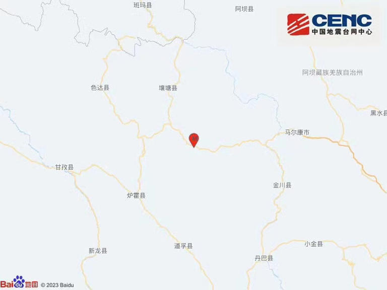 四川阿坝州壤塘县发生3.4级地震 震源深度10千米
