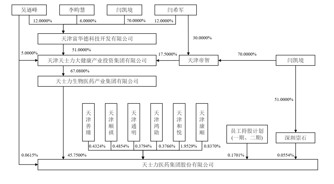 据公告,天津和悦、天津顺祺、天津善臻、天津通明、天津鸿勋的执行事务合伙人均为天士力集团,实际控制人均为闫凯境、闫希军、吴迺峰、李畇慧;天津康顺的执行事务合伙人为天津帝智,实际控制人为闫凯境、闫希军。