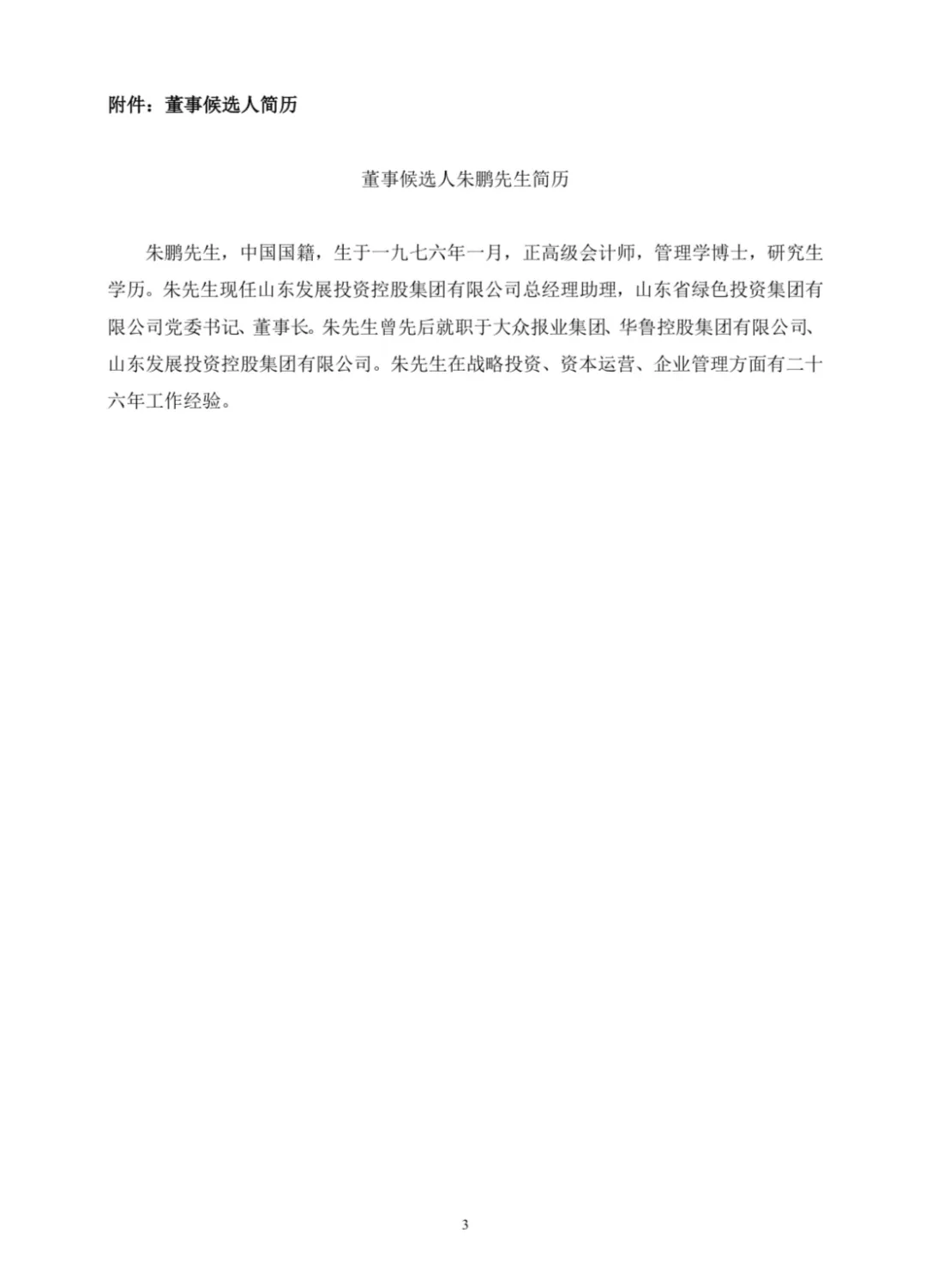 本公司董事会同意提名朱鹏先生作为董事候选人上报本公司股东大会批准,任期自股东大会审议通过之日起至第十届董事会任期届满之日止。
